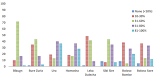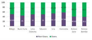 Brukere og ikke-brukere av jorddekke fordelt etter distrikt i Etiopia.
