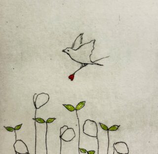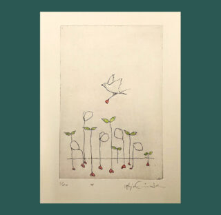 Ser du etter en unik og eksklusiv julegave til deg selv eller noen du er glad i? Akkurat nå har vi 10 stk signerte grafiske trykk laget av vår ambassadør og ansatt, Anja Solvik. Anja er kunstner og kjent som grunnlegger av Bunadsgeriljaen. Motivet var en bestilling til årets frøpose, og symboliserer at hvert frø du sår er en kjærlighetserklæring til moder jord - et hjertefrø. Hvert bilde er trykket på manuell presse i teknikken kobbertrykk, og håndkolorert med akvarell. Størrelsen på motivet er 15x20 cm. Med passepartout er størrelsen 21x29,7 cm og passer fint i en ramme i A4 format. Hele beløpet går til Utviklingsfondets prosjekter. Skynd deg før det blir utsolgt!